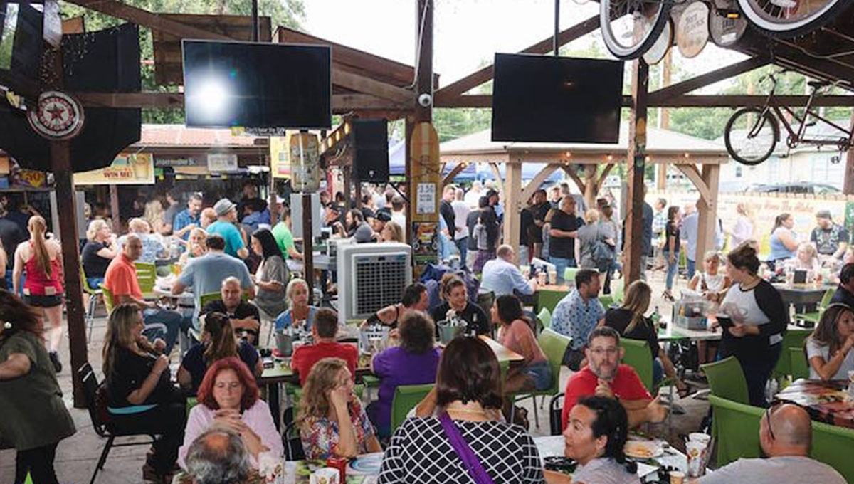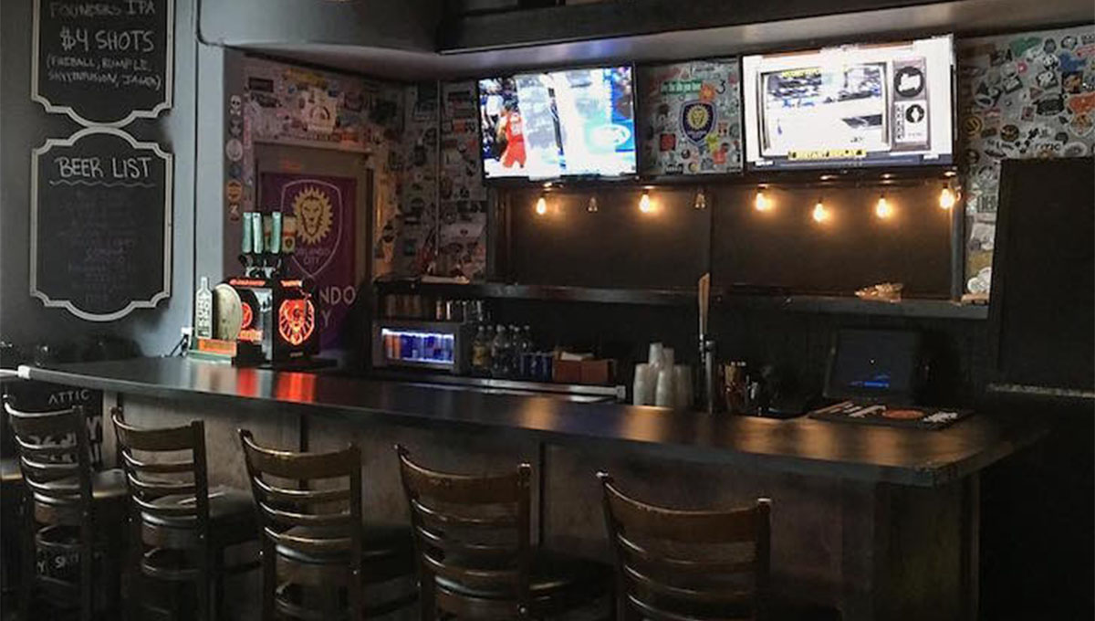 Orlando City Soccer Club, este é um ótimo lugar para jogar antes do jogo no estádio. Experimente um de seus coquetéis com temas de futebol como o “Pink Pride” feito com Absolute Grapefruit, St-Germain, suco de limão fresco, suco de cranberry e xarope simples. Abre às 11 horas