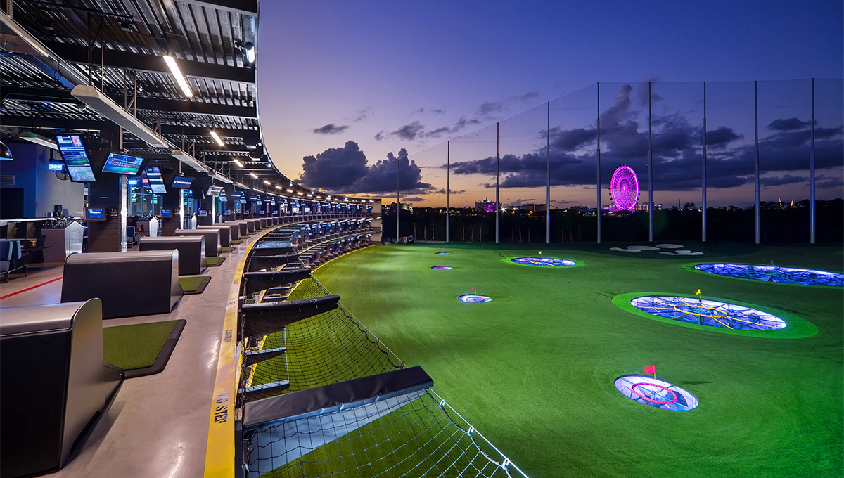 Localizado próximo a International Drive, o TopGolf é uma oportunidade de diversão num esporte pouco comum no Brasil. São três andares com estações de golfe para até seis pessoas: elas jogam, uma atrás da outra, e precisam acertar grandes alvos que ficam no imenso gramado na frente do pequeno edifício.